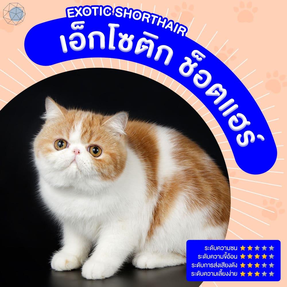 เอ็กโซติก ช็อตแฮร์ แมวหน้าบี้ หน้ากลม ตากลมโต ขนสั้น หนานุ่ม ดูแลง่าย