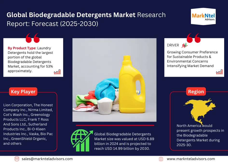 MarkNtel Advisors, a leading market research and consulting firm, has announced the release of its latest study titled “Biodegradable Detergents Market Analysis, 2025–2030.”
