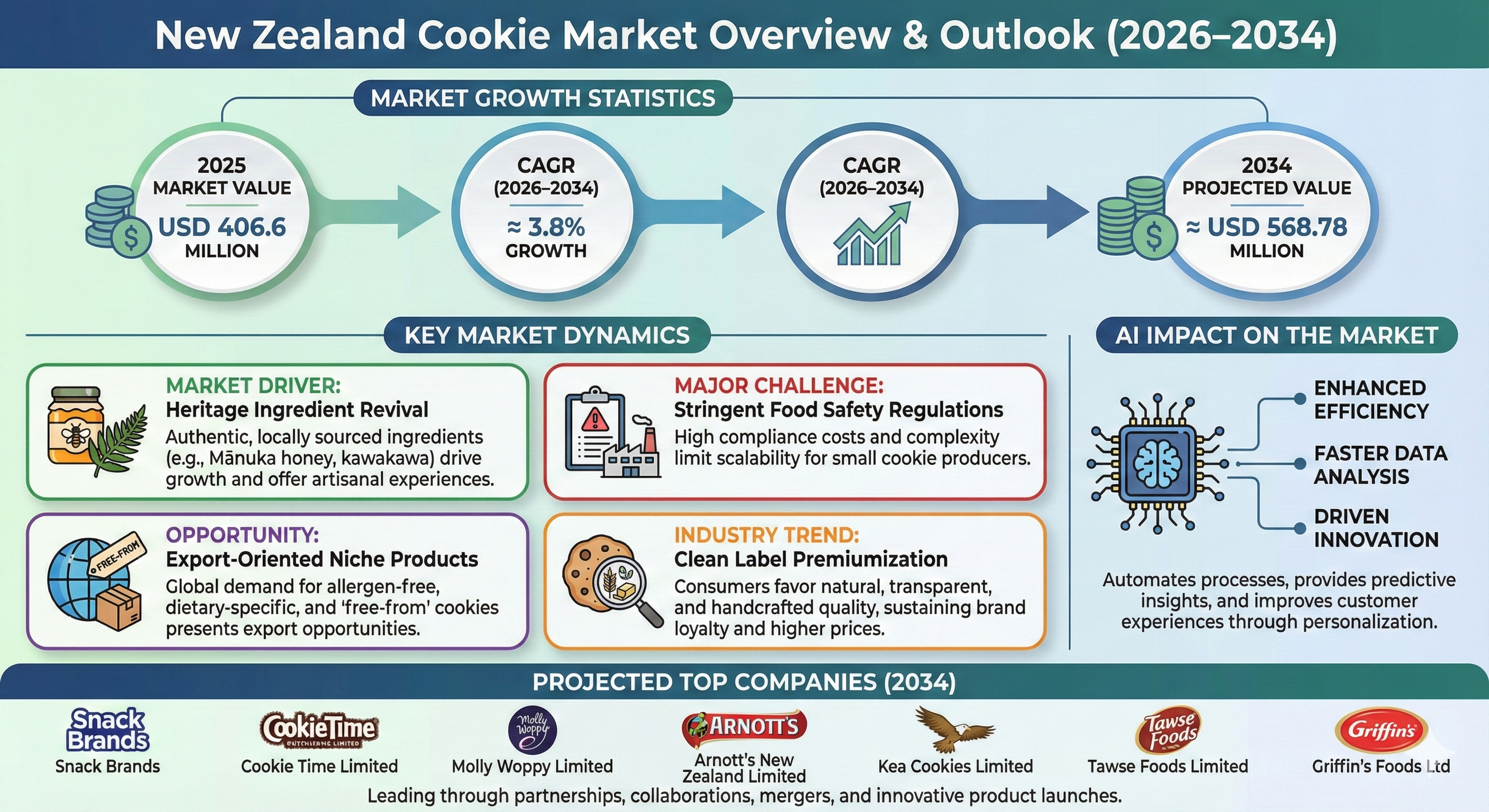 · Which companies are expected to significantly impact the New Zealand Cookie Market, and what does their market outlook reveal?