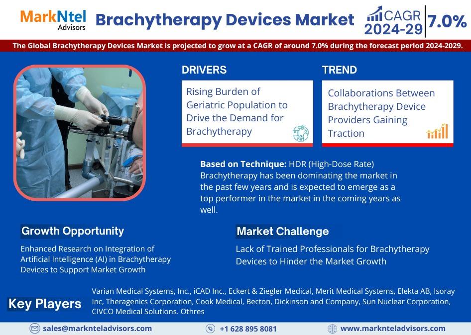 MarkNtel Advisors, a leading market research and consulting firm, has announced the release of its latest study titled Brachytherapy Devices Market Research Report: Forecast (2024–2029). This report provides a detailed assessment of the Brachytherapy Devices, covering its evolving dynamics, emerging trends, key growth drivers, major challenges, and competitive landscape.