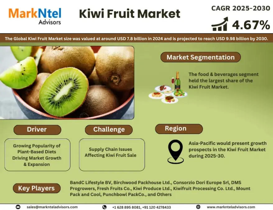 MarkNtel Advisors, a leading market research and consulting firm, has announced the release of its latest study titled “ Global Kiwi Fruit Market Analysis, 2025-2030.”