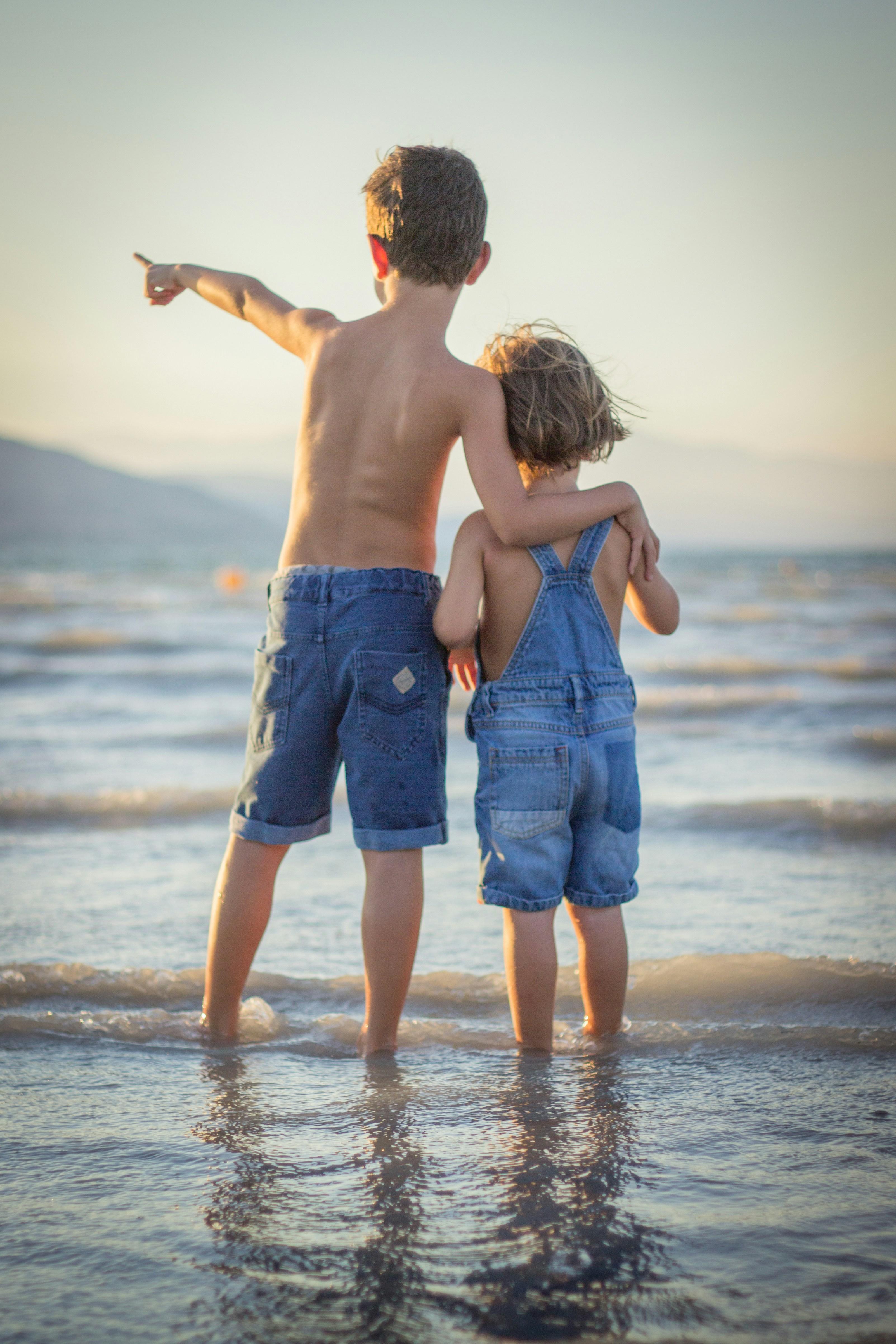 Children, as they stand at the water’s edge, exhibit a captivating blend of curiosity and camaraderie, a reflection of ancient evolutionary instincts. This spontaneous moment at the beach illustrates not only the joy of discovery but also the fundame