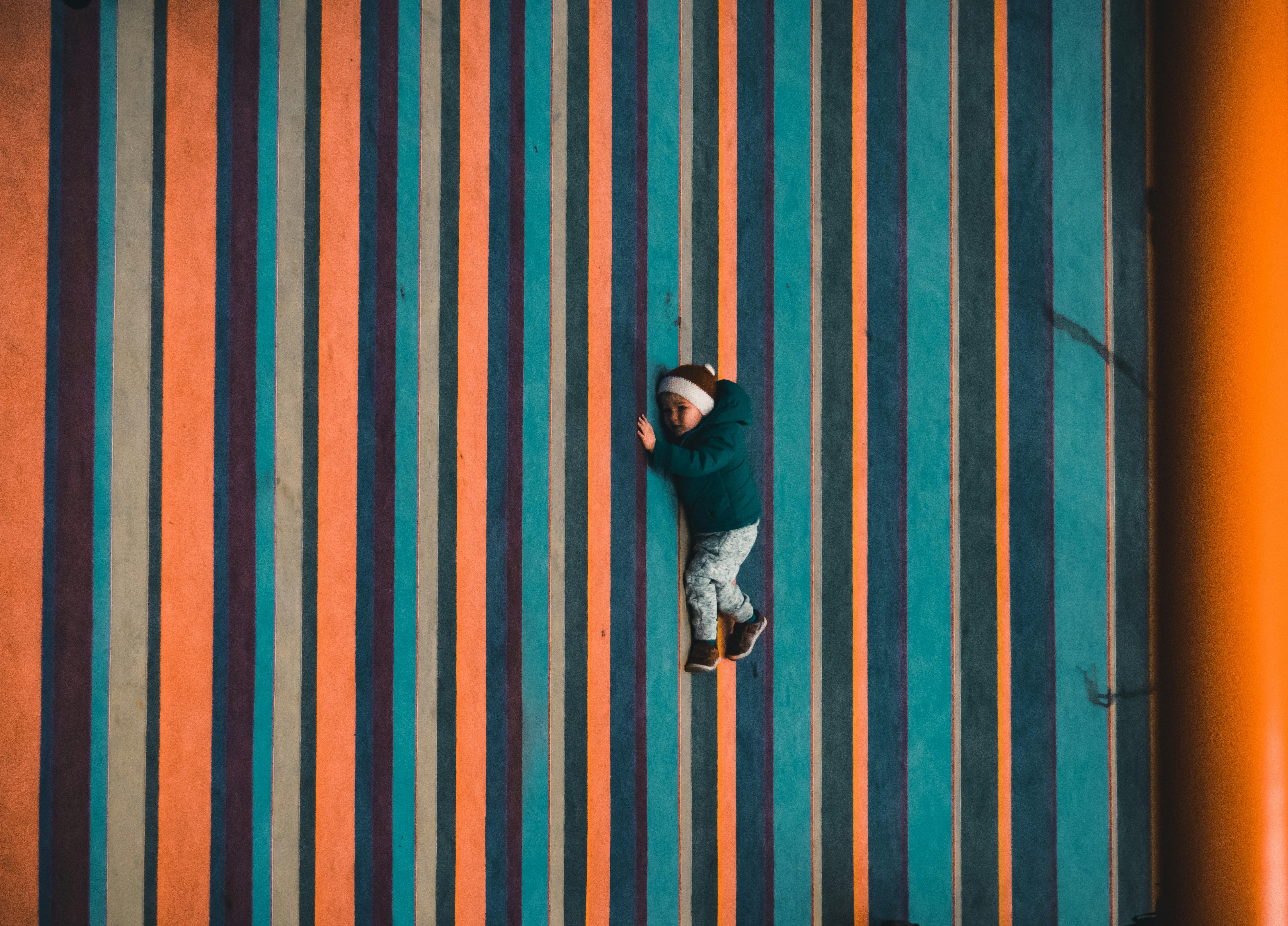 जीवन के छोटे-छोटे क्षणों में कई गहरी बातें छाई रहती हैं। एक युवा बच्चा, जिसे शायद अपने चारों ओर रंगीन धारियों में गहराई से डूबते हुए देखा गया है, हमें यह सोचने पर मजबूर करता है कि कैसे रंग और आकृतियाँ हमारी जैविक प्रतिक्रियाओं को प्रभावित कर सकती हैं। यहाँ पर स्थिति केवल एक खेल नहीं, बल्कि एक संवेदनशील अनुभव है। यह दृश्य उस जिज्ञासा का प्रतीक है जो बच्चों में होती है। जब वे अपनी धारियों में, जिनका कोई अंत नहीं दिखाई देता, रेंगते हैं तो यह पुष्टि करता है कि उनका मन पूरी तरह से उस पल में बसा हुआ है।