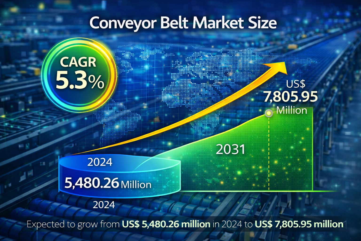 The conveyor belt market is entering a phase of steady and structurally driven growth between 2025 and 2031. According to Conveyor Belt Market Dynamics, Recent Developments, and Strategic Insights by 2031, the market is projected to expand from US$ 5,480.26 million in 2024 to US$ 7,805.95 million by 2031, reflecting a compound annual growth rate of 5.3 percent. This outlook presents important implications for equipment manufacturers and end users across mining, manufacturing, logistics, and infrastructure driven industries.