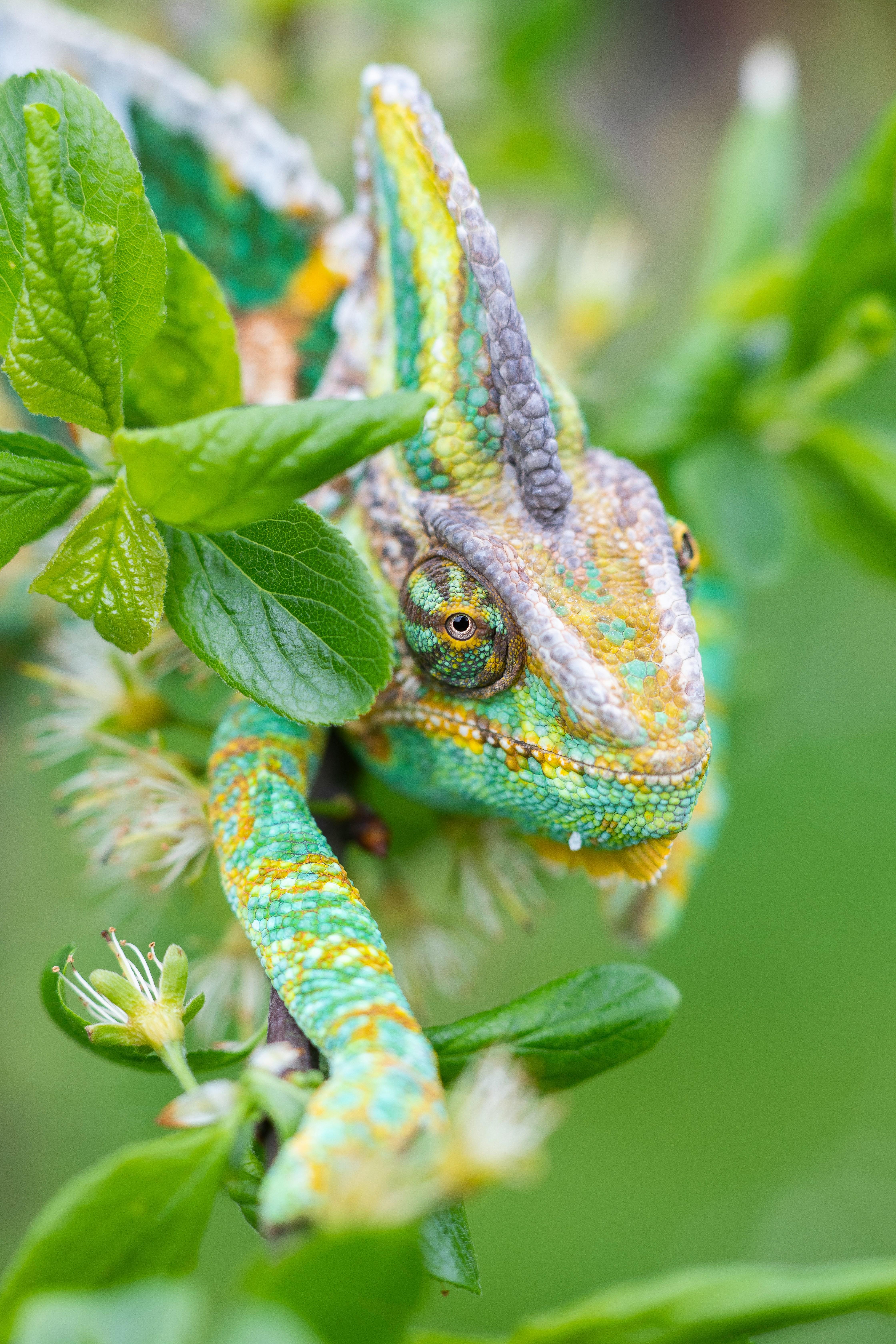 यदि आप ध्यान से देखें, तो चameleons की त्रिकोणीय आंखें जो स्वतंत्र रूप से घूम सकती हैं, एक अद्भुत देखने की क्षमता दर्शाती हैं। ये आंखें उन्हें 360 डिग्री दृश्यता का लाभ देती हैं, जिससे वह अपने संभावित शिकार या शत्रु का सहजता से अनुमान लगा सकते हैं। यहां तक कि उनका स्वाद लेने वाला लम्बा जीभ, जो अपनी शरीर के आकार से तीन गुना लंबा हो सकता है, एक शिकार को पकड़ने के लिए एक चतुर उपाय है।