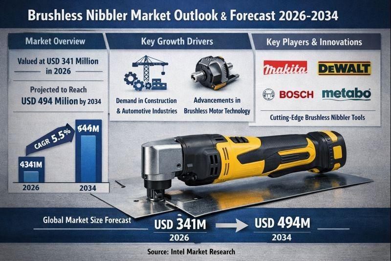 According to a new report from Intel Market Research, Global Brushless Nibbler market was valued at USD 341 million in 2026 and is projected to reach USD 494 million by 2034, growing at a steady CAGR of 5.5% during the forecast period (2026-2034). This growth is driven by increasing demand for precision metal cutting tools in construction and automotive industries, alongside advancements in brushless motor technology.