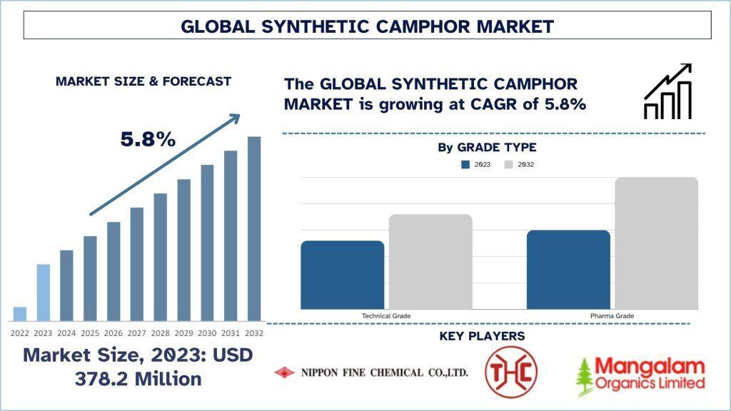 The Synthetic Camphor Market was valued at USD 378.2 Million in 2023 and is expected to grow at a strong CAGR of around 5.8% during the forecast period (2024-2032)