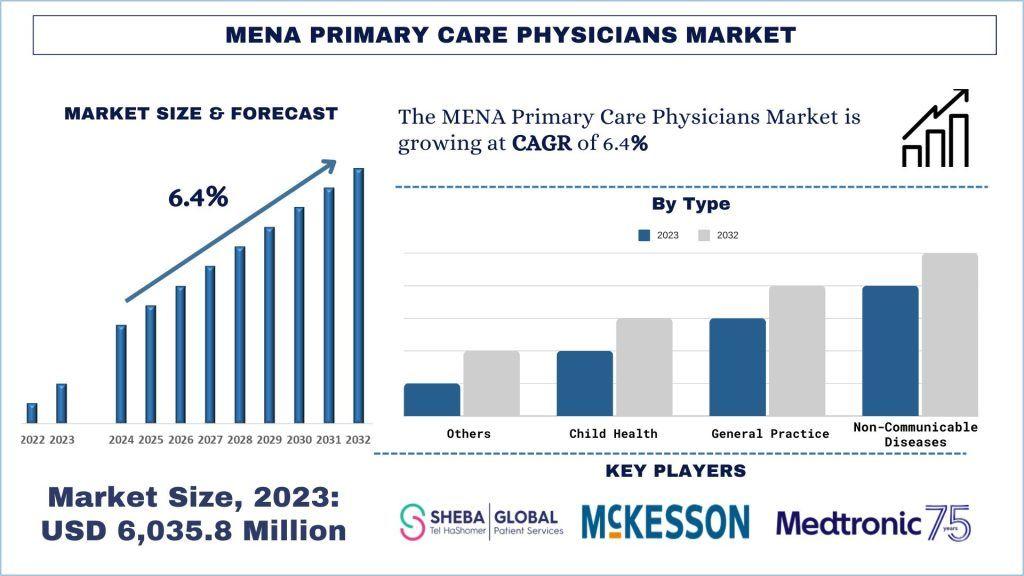 According to UnivDatos, the rising prevalence of chronic diseases across the Middle East and North Africa (MENA) region is a key factor driving demand for primary care services. As highlighted in the MENA Primary Care Physicians Market report, the market was valued at USD 6,035.82 million in 2023 and is expected to grow at a CAGR of 6.4% during the forecast period from 2024 to 2032, reaching USD million by 2032.