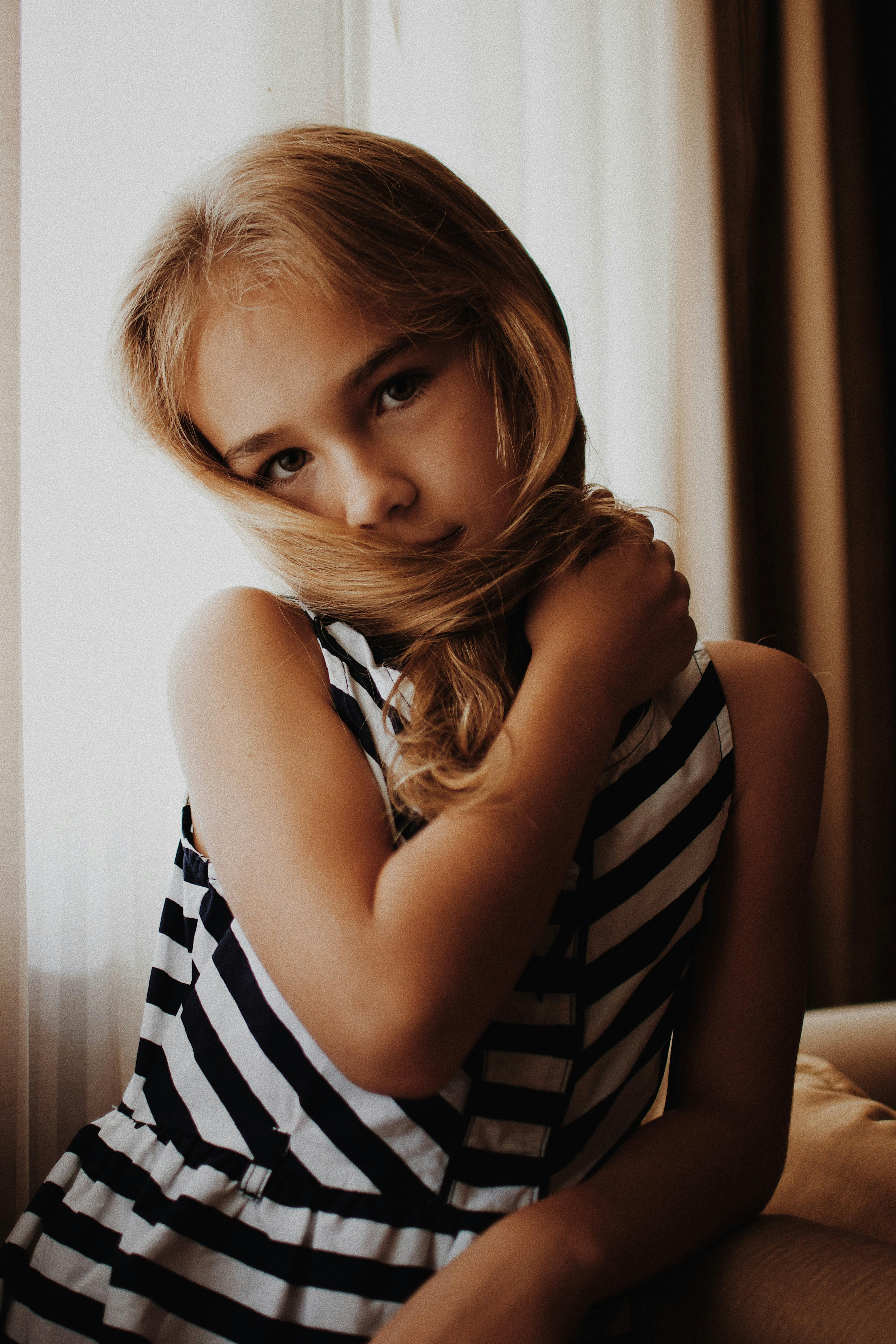 बचपन एक ऐसा चरण है जहाँ हम अपने इमोशंस और व्यव्हार को समझना सीखते हैं। एक छोटी उम्र की लड़की की छवि देखने पर, जो कि सादा कपड़े पहने हुए और अपने बालों को सहलाती हुई नजर आ रही है, कई जटिलताएं एक साथ उभरती हैं। इस प्रवृत्ति में न सिर्फ नाजुकता का संकेत होता है, बल्कि यह भी दर्शाता है कि हम कैसे अपने इमोशंस को दिखाते हैं। बालों को सहलाना एक सामान्य स्वाभाविक व्यवहार है, जो तनाव से राहत देने और आत्म-संवेदनशीलता को बढ़ाने में मदद करता है।