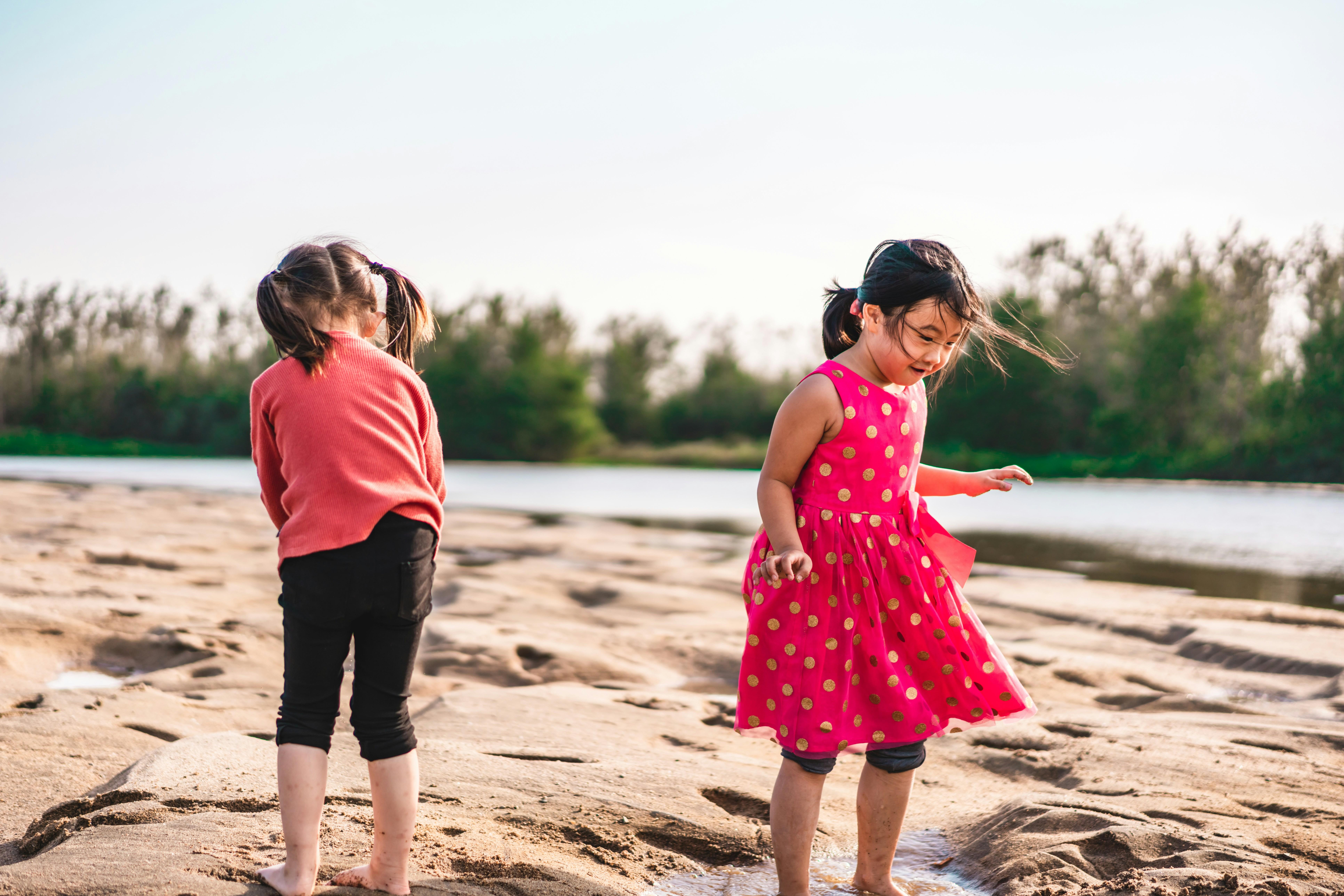 在阳光明媚的河岸边,两个小女孩正享受着沙滩的乐趣。她们的无忧无虑展现在每一个欢笑和嬉戏的瞬间。孩童的游戏不仅是纯粹的娱乐,也是生物行为的重要体现。从科学的角度来看,这种现象揭示了社交学习和探索行为在儿童成长过程中的关键作用。