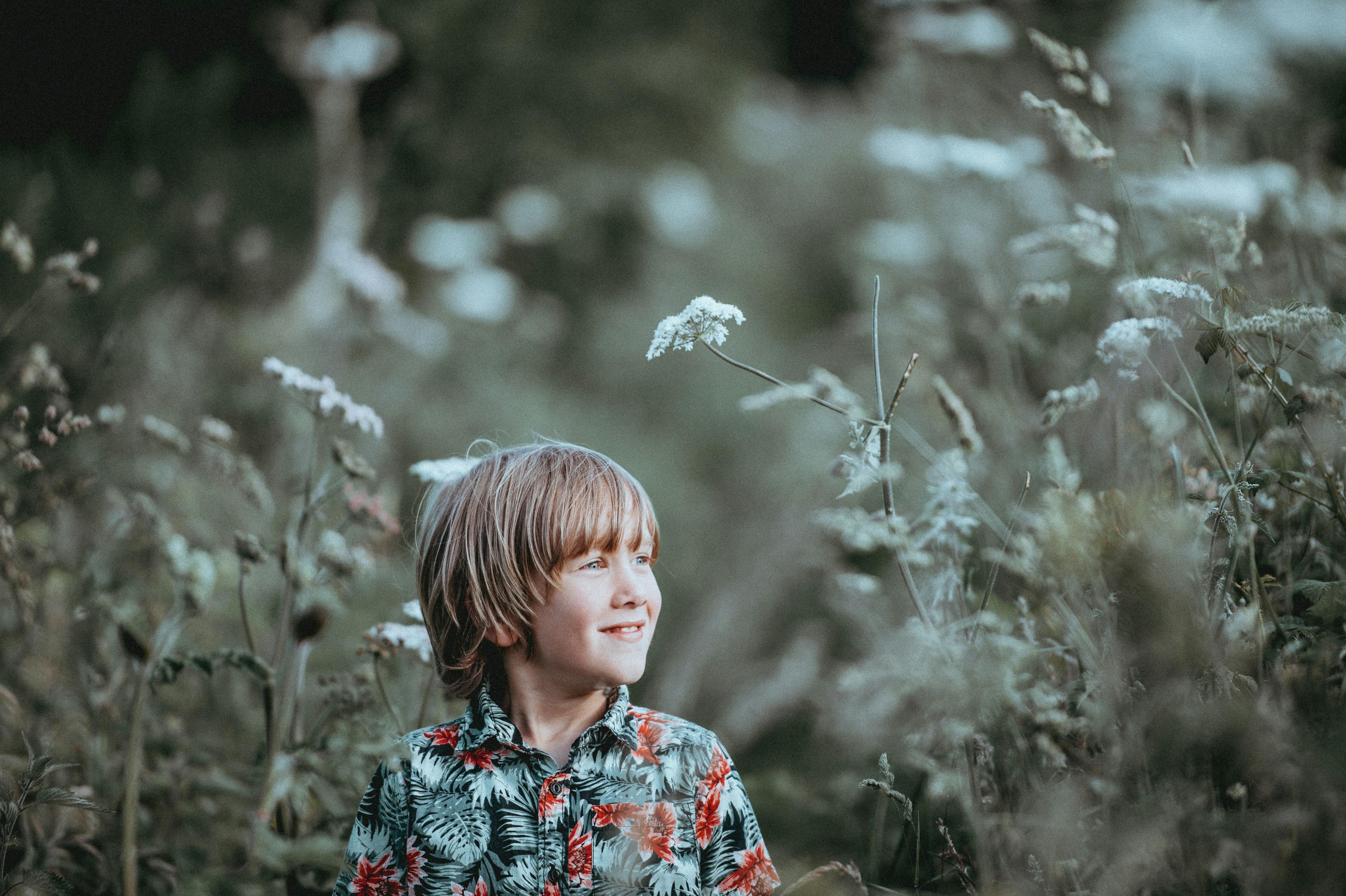 Biologists have found that this curiosity is not merely whimsical; it is an essential survival mechanism. Engaging with the environment aids not only cognitive development but also enhances social skills and emotional resilience. The contrast of his colorful shirt against the muted tones of the wildflowers suggests a natural instinct to stand out, enchanting predators and facilitating social interactions that are vital in forming community bonds.