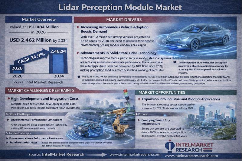 According to a new report from Intel Market Research, Global Lidar Perception Module market was valued at USD 484 million in 2026 and is projected to reach USD 2,462 million by 2034, growing at a remarkable CAGR of 24.9% during the forecast period (2026-2034). This explosive growth stems from rapid autonomous vehicle adoption, smart city infrastructure development, and industrial automation advancements where precise environmental perception is mission-critical.