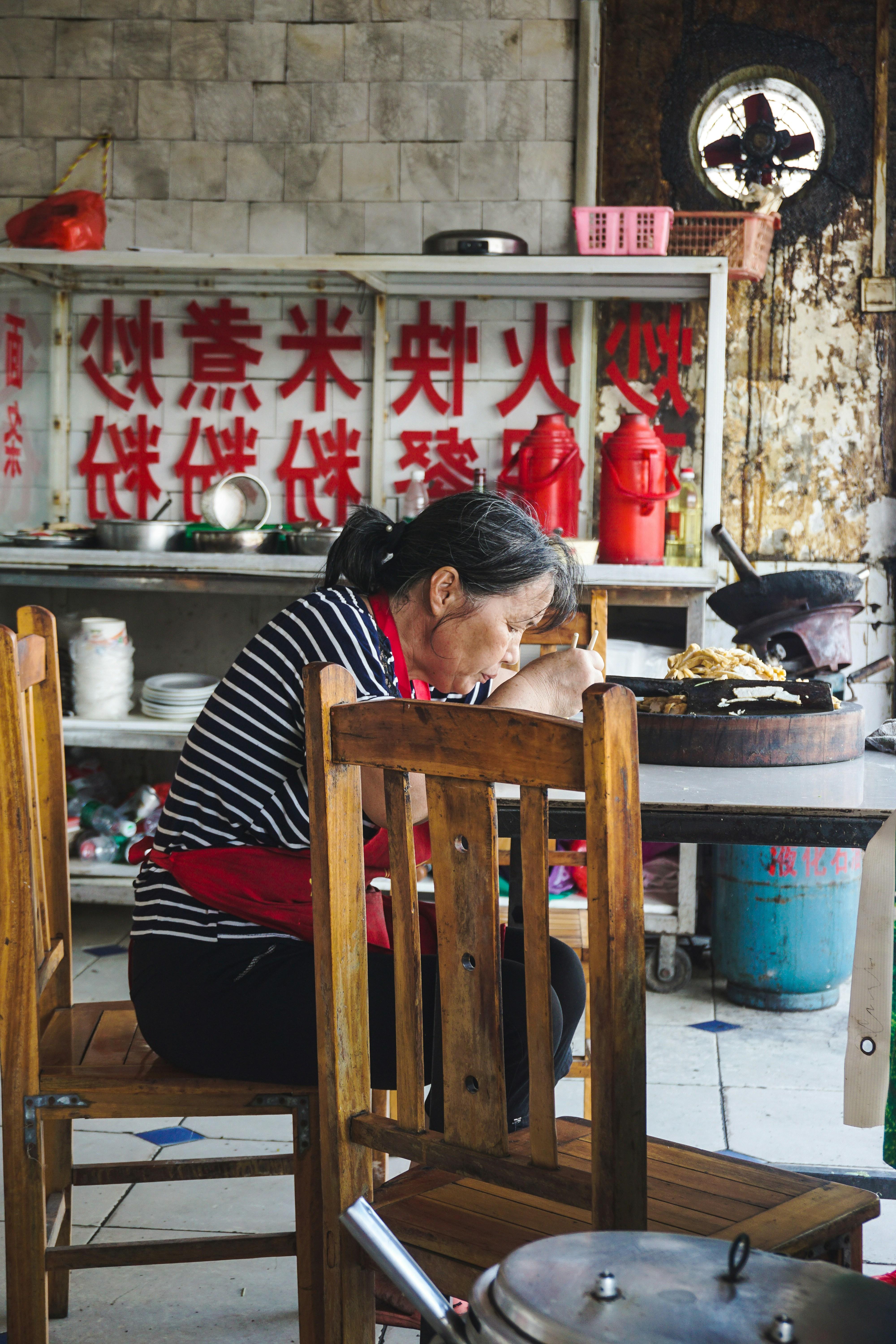 走进一家小餐馆,仿佛可以感受到时间的流逝。一个中年女性坐在餐桌旁,低头用心品尝着自己刚做出的美味。她的额头微微皱起,似乎在思索料理的精髓。这一瞬间,不仅仅是烹饪的过程,更像是与食材之间深刻的对话。这种细腻的行为,正是生物行为学中值得深思的题材。