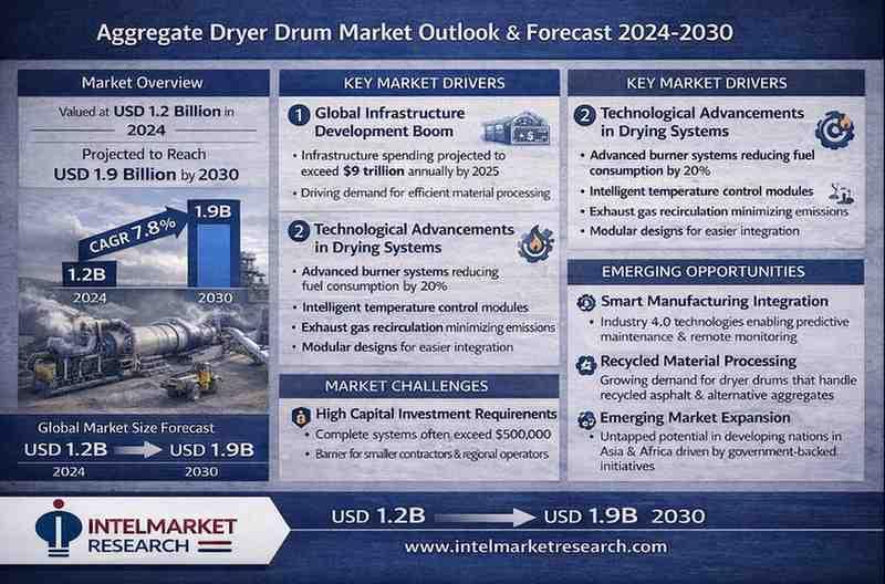 According to a new report from Intel Market Research, Global Aggregate Dryer Drums market was valued at USD 1.26 billion in 2026 and is projected to reach USD 2.04 billion by 2034, growing at a CAGR of 6.8% during the forecast period. This growth is driven by increasing infrastructure development projects worldwide and the rising demand for energy-efficient drying solutions in asphalt production and construction applications.