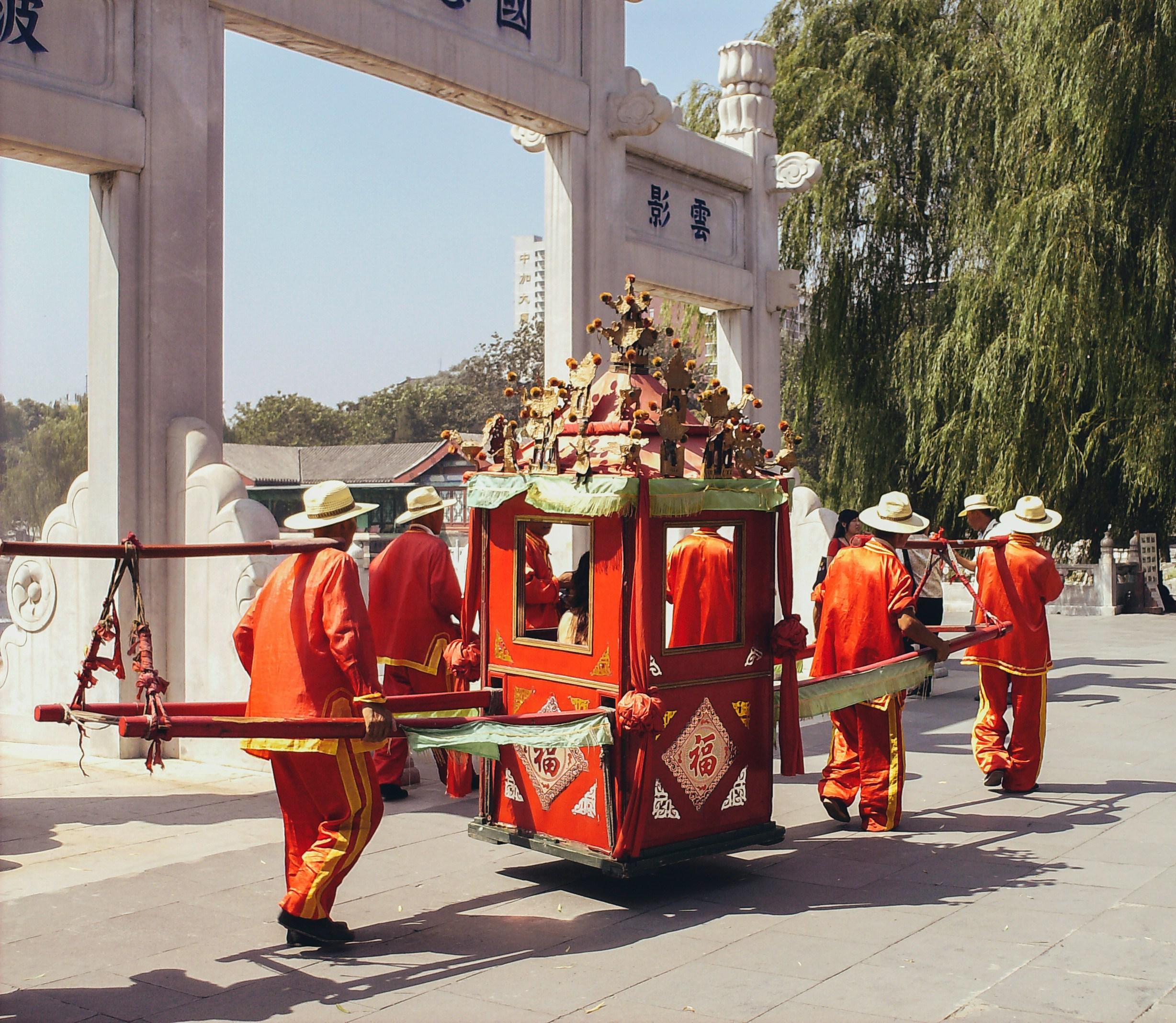 In vibrant scenes reminiscent of ancient rituals, a group of individuals clad in striking red garments moves in unison, expertly balancing a beautifully adorned palanquin. This vivid display offers a fascinating glimpse into the intricate biological behaviors underpinning human cooperation and cultural practices. The synchronization required for such an undertaking speaks volumes about our shared evolutionary heritage and the innate tendencies that bind us together.