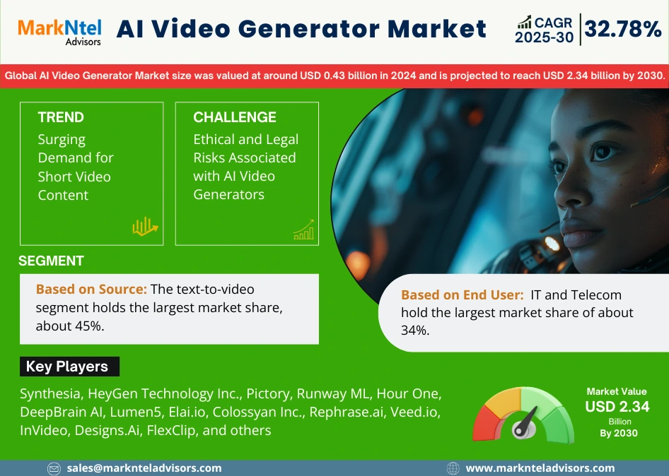 AI Video Generator Market to Surpass USD 2.34 Billion by 2030, Growing at 32.78% CAGR