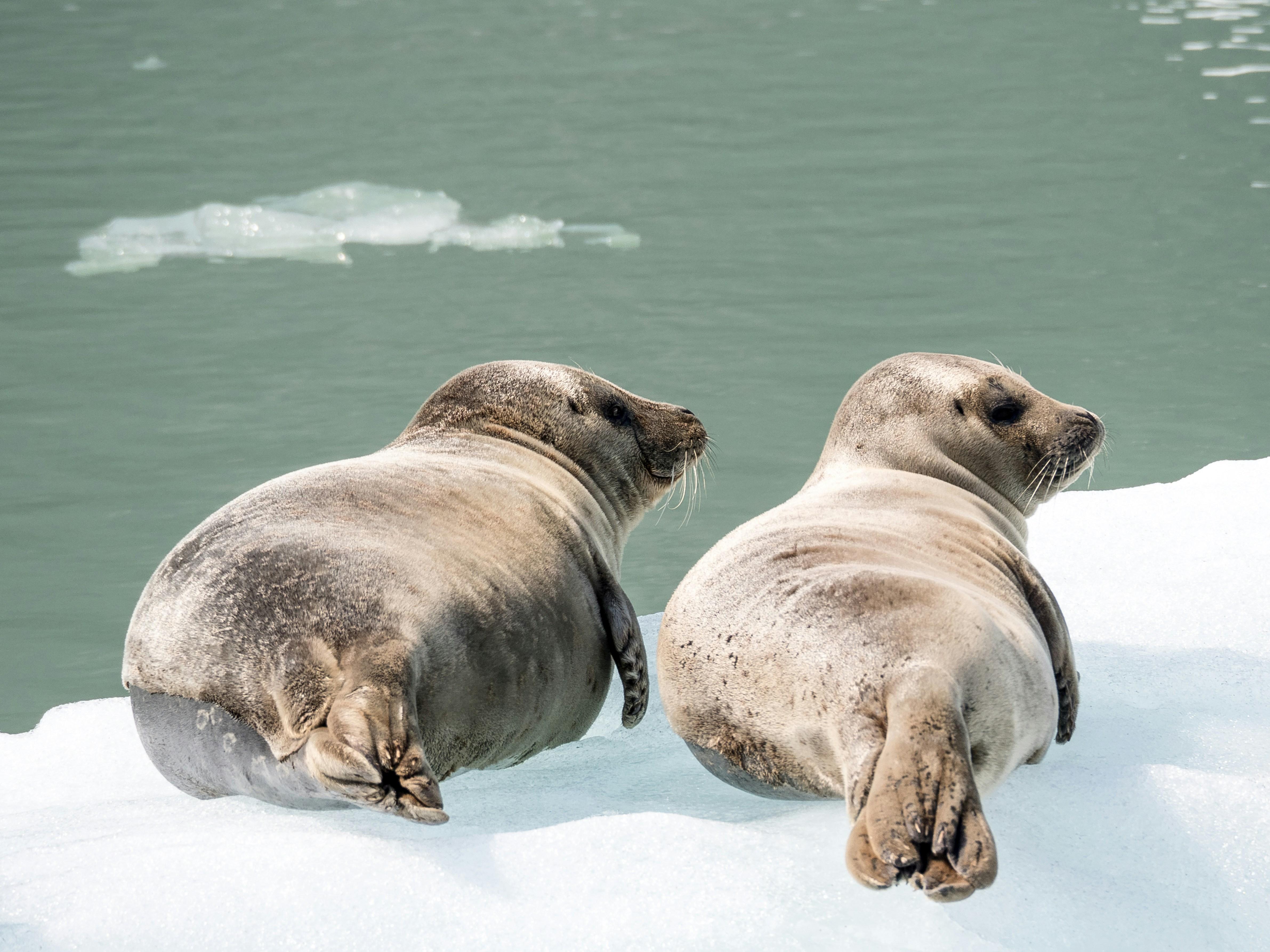 It seems these seals are practicing their best couch potato impersonations. Seals can sleep in the water while keeping their noses above the surface! Who knew balancing excitedly on the edge of reality could look so cozy? Just another day in the life of nature’s most laid-back mammals.