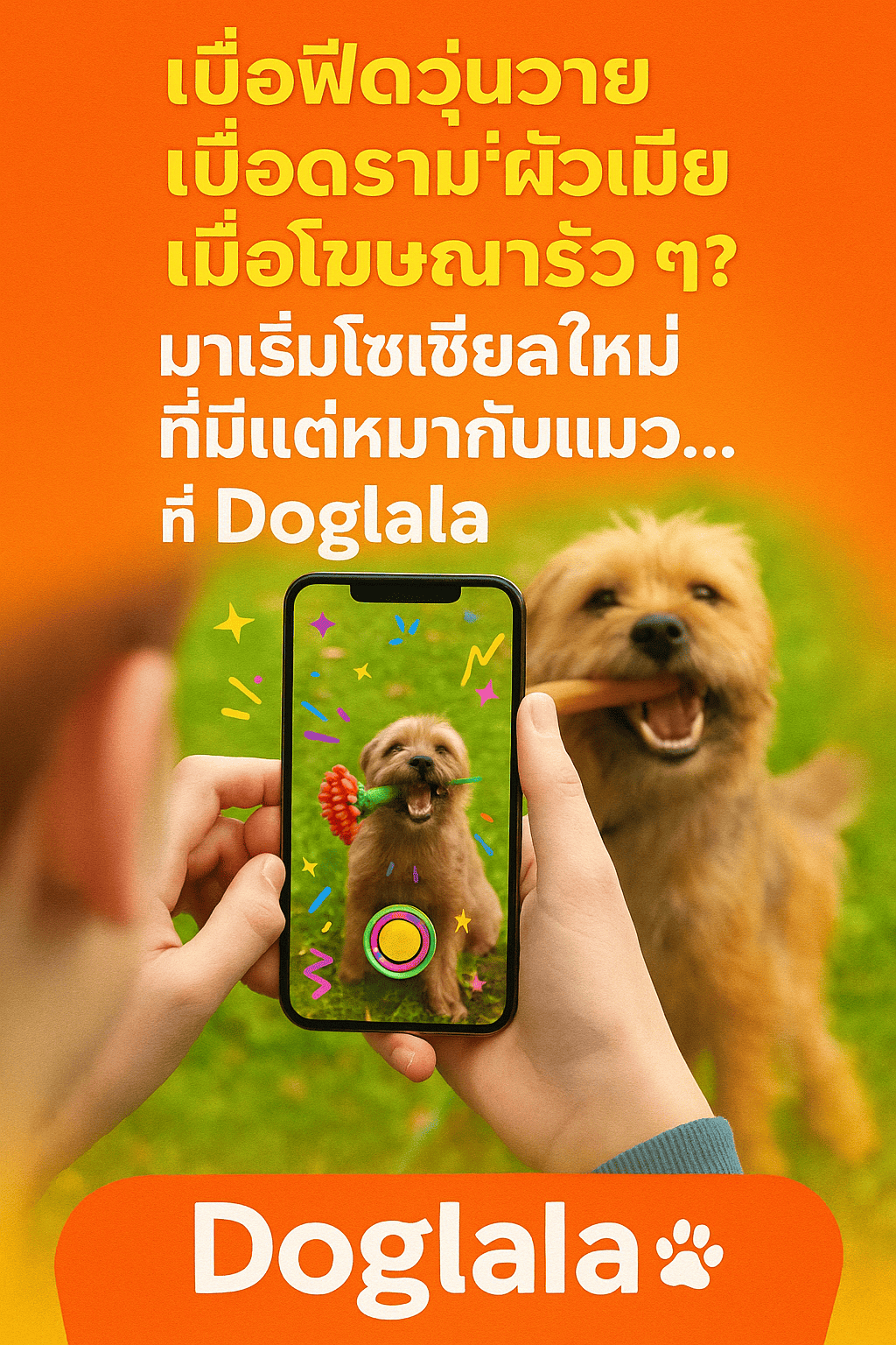 “เบื่อฟีดวุ่นวาย เบื่อดราม่าผัวเมีย เบื่อโฆษณารัว ๆ? มาเริ่มโซเชียลใหม่ ที่มีแต่หมากับแมว...ที่ doglala 🐾”