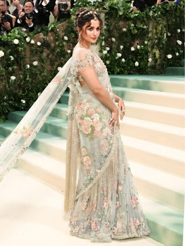 Alia Bhatt saiu da floresta encantada ou é só impressão minha? Parece que a moda de flores está mais forte do que a de um jardim de infância. Fico imaginando quem vai ter coragem de usar isso em uma festa de verdade.
