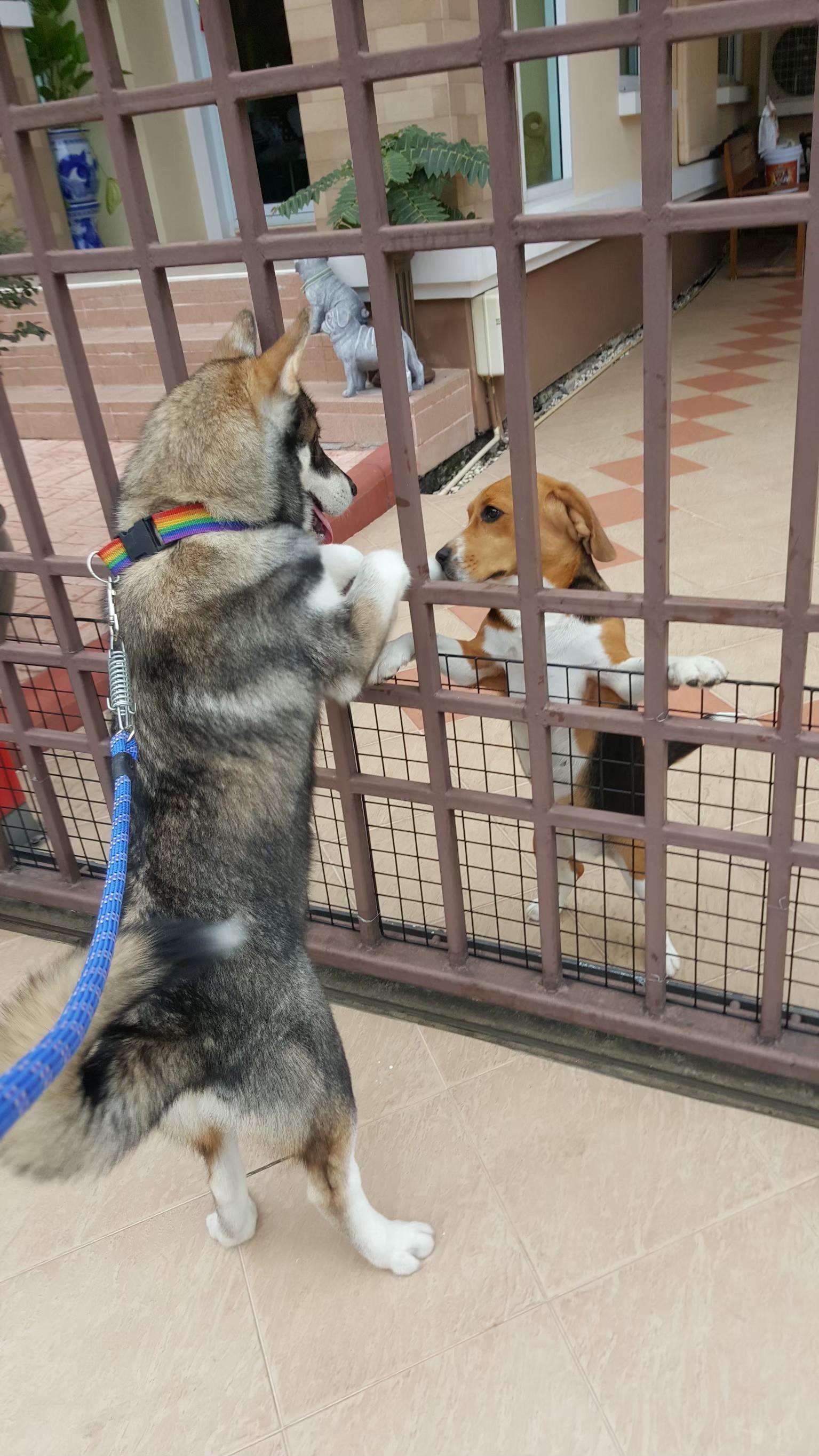 แวะทักทายเพื่อนบ้านฮับ 😁 😁 #dog #cutepet #snow #หมาน่ารัก