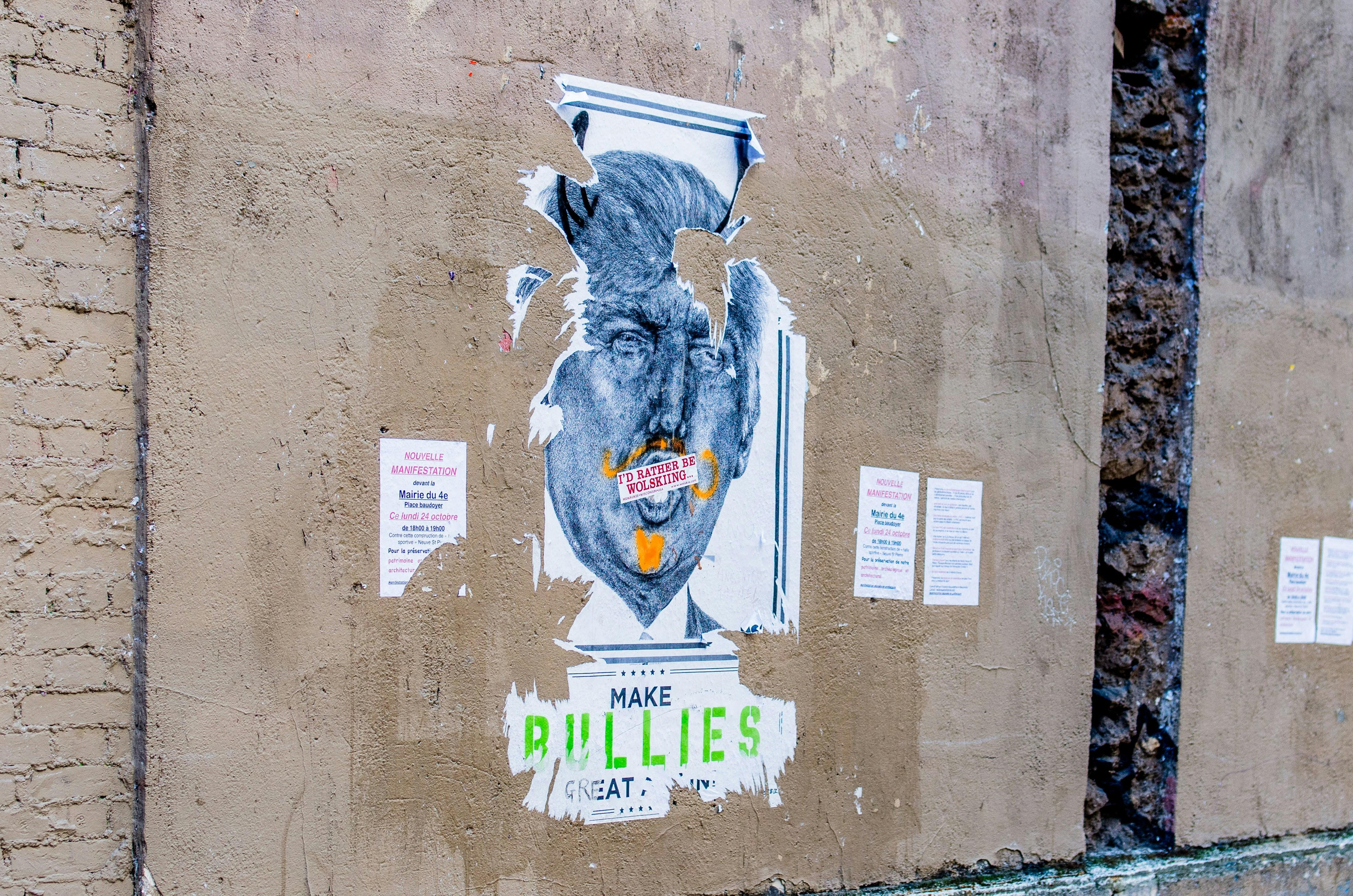Looks like the wall's been graced with yet another masterpiece featuring Donald Trump, because why not? That “I'd rather be wolskiing” vibe really gives off the impression that art is supposed to be confusing.