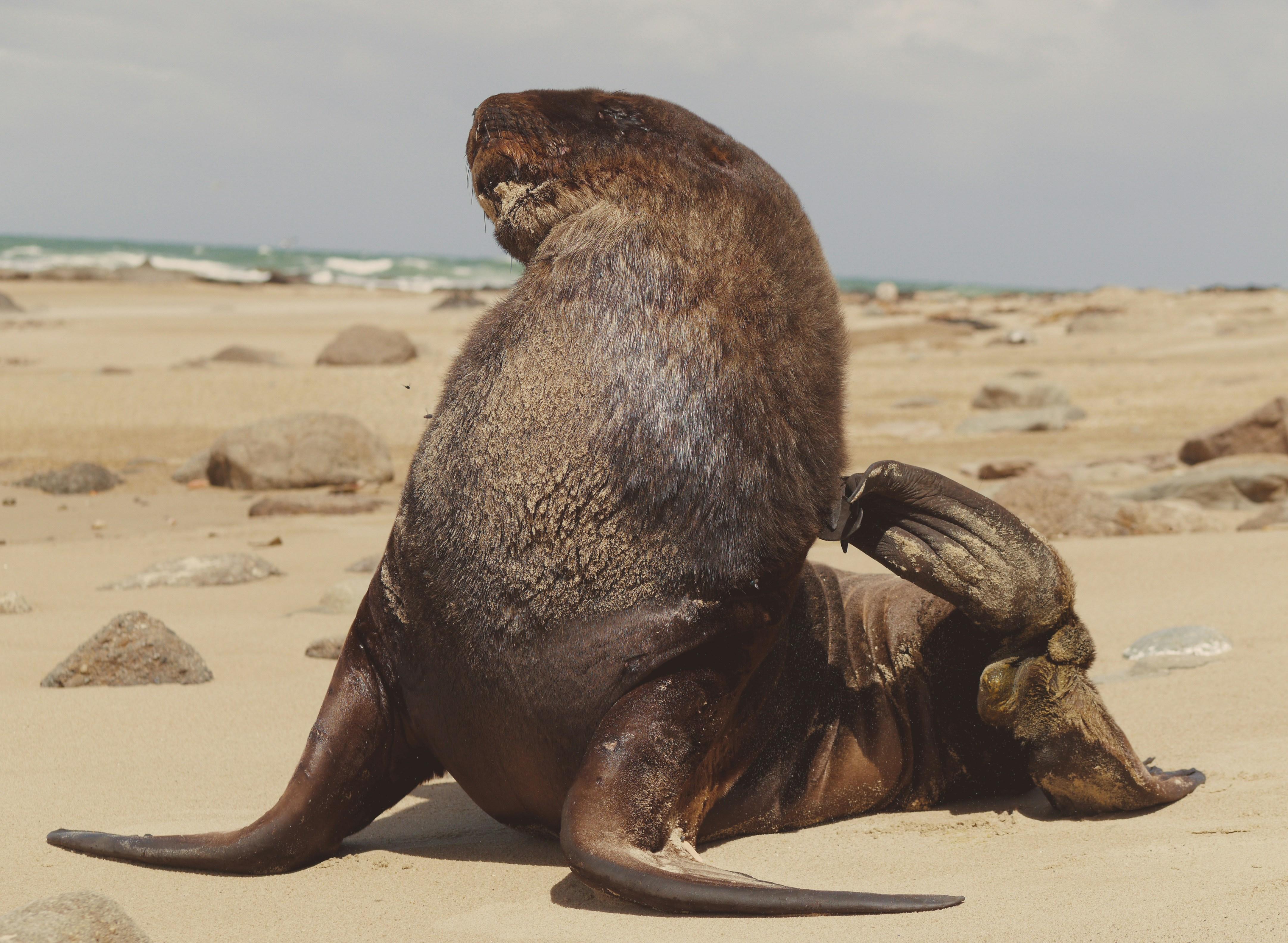 Looks like someone took the phrase "beach bum" a little too seriously! Harbor seals can hold their breath for up to 30 minutes while diving for snacks. With that kind of dedication, it's no wonder they look so relaxed—clearly the masters of vacation vibes. #Seals #BeachLife #AnimalHumor