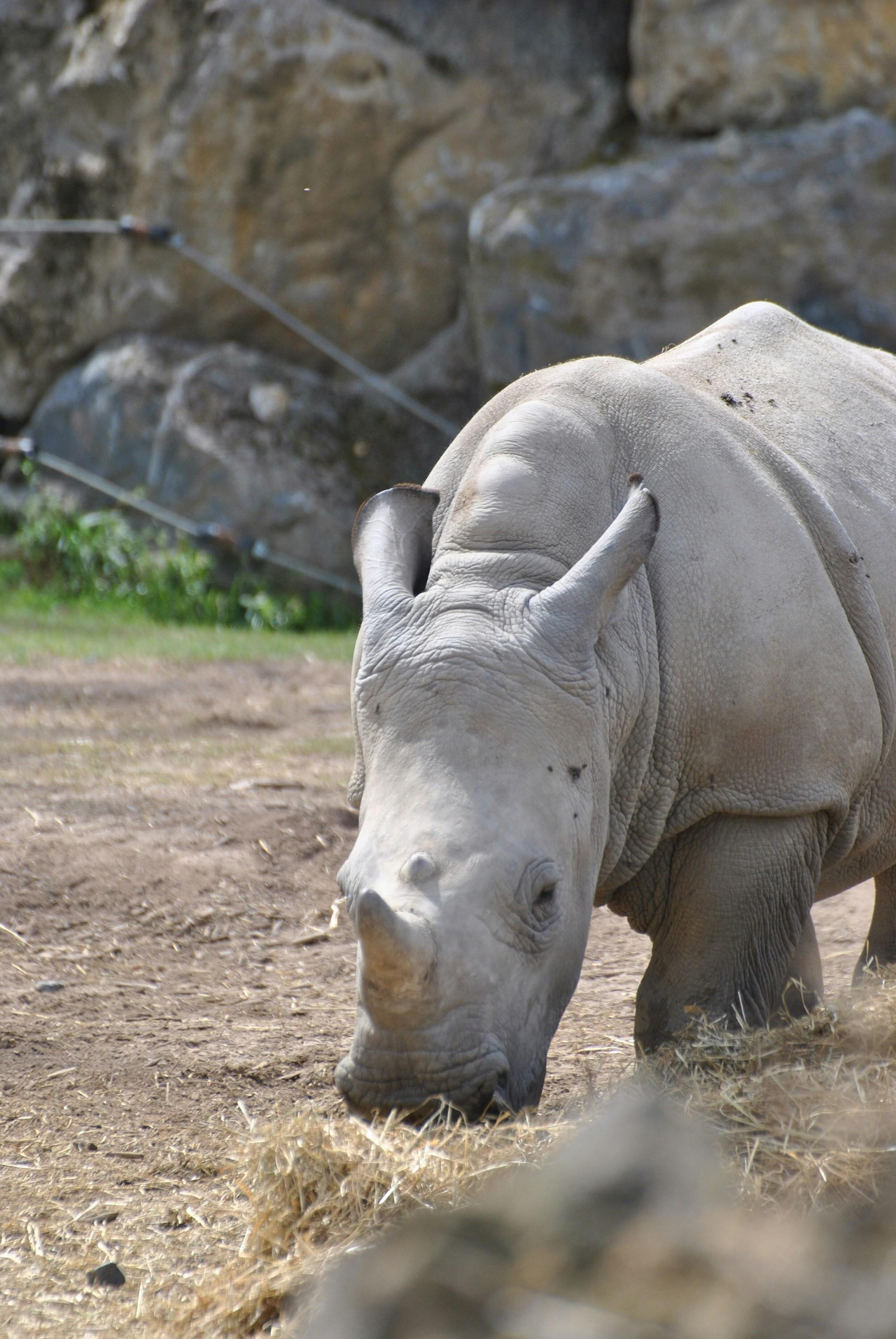 Why does this rhinoceros look like it's contemplating the meaning of life? Perhaps it’s just weighing the pros and cons of napping versus snacking! Rhinos, especially the white variety, are known to spend up to 12 hours a day munching on grass. Just like them, remember to balance your diet with a good dose of rest. #Rhinoceros #WhiteRhino #PetCare